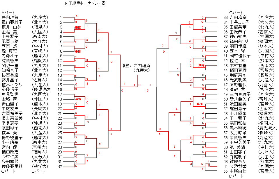 第46回全九州学生空手道選手権大会 女子組手 日時:平成15年 5月15日 9:00 会場:大分大学 第一体育館 主催:全九州学生空手道選手権大会 主管:大分地区学生空手道連盟 後援:大分合同新聞社、OBS大分放送、OBSテレビ大分