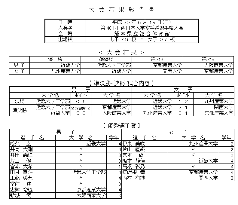 5月18日(日) 第46回西日本大学空手道選手権大会 会場:熊本県立総合体育館 P1