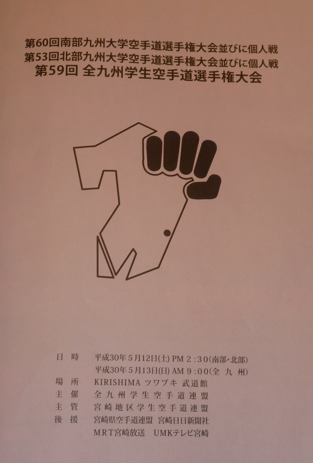 第53回北部九州大学空手道選手権大会並びに個人戦 日時 平成30年5月12日(土)PM2:30 場所 KIRISHIMAツワブキ武道館