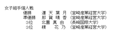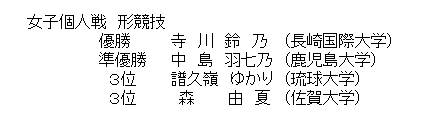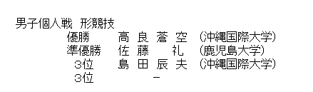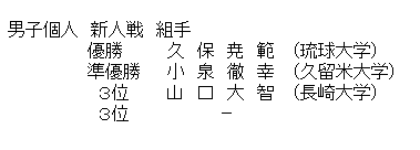 表紙 南部総合結果 男子個人組手 男子個人形 女子個人組手 男子個人組手新人戦 女子個人新人戦 女子個人形 男子団体組手 女子団体組手 Excel版 PDF版 HOME