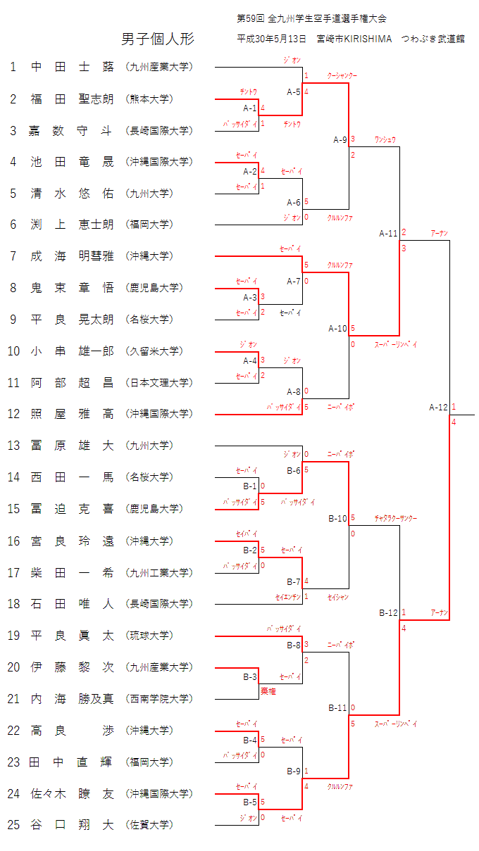 表紙   個人戦総合結果  男子個人形  女子個人形   女子個人組手  男子個人組手  Excel版  PDF版  HOME