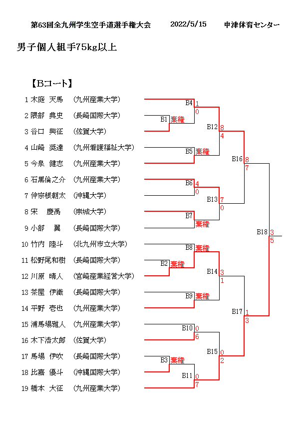 第63回全九州学生空手道選手権大会 2022/5/15 中津体育センター 男子個人組手75kg以上