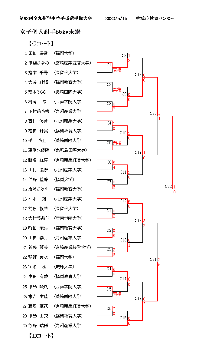 第63回全九州学生空手道選手権大会 2022/5/15 中津体育センター 女子個人組手55kg未満