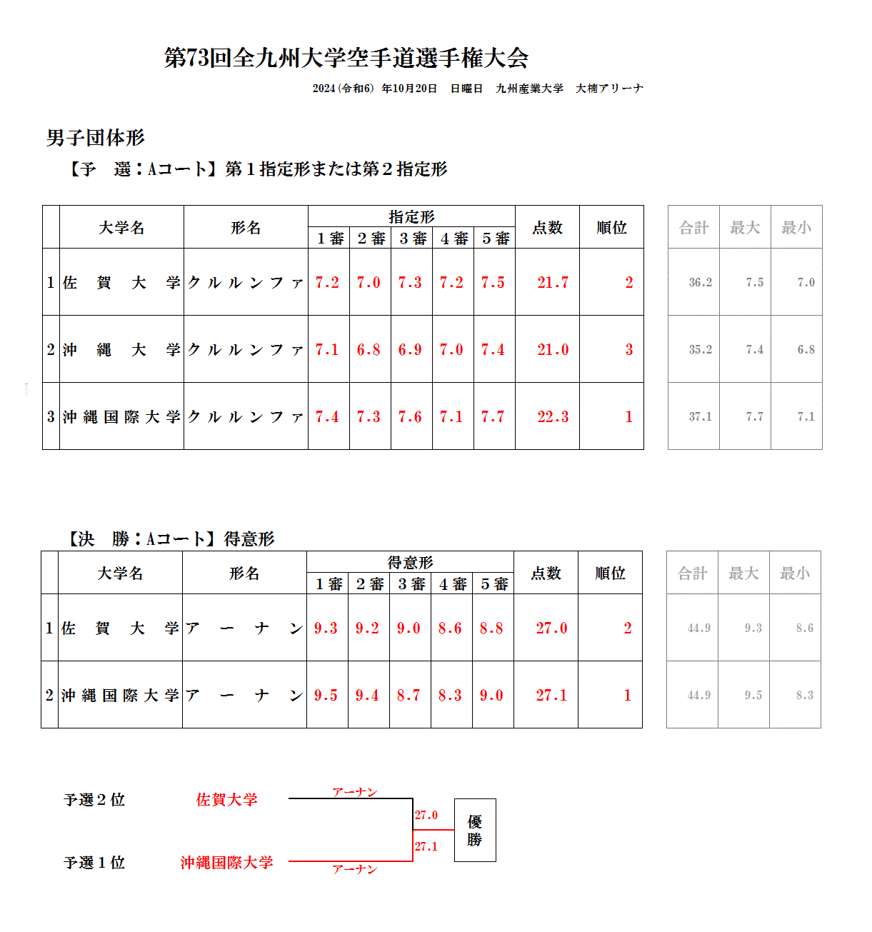 1.表紙 2.総合結果 3.個人形予選 4.個人形3位決定、決勝 5.男子個人組手 6.女子個人組手