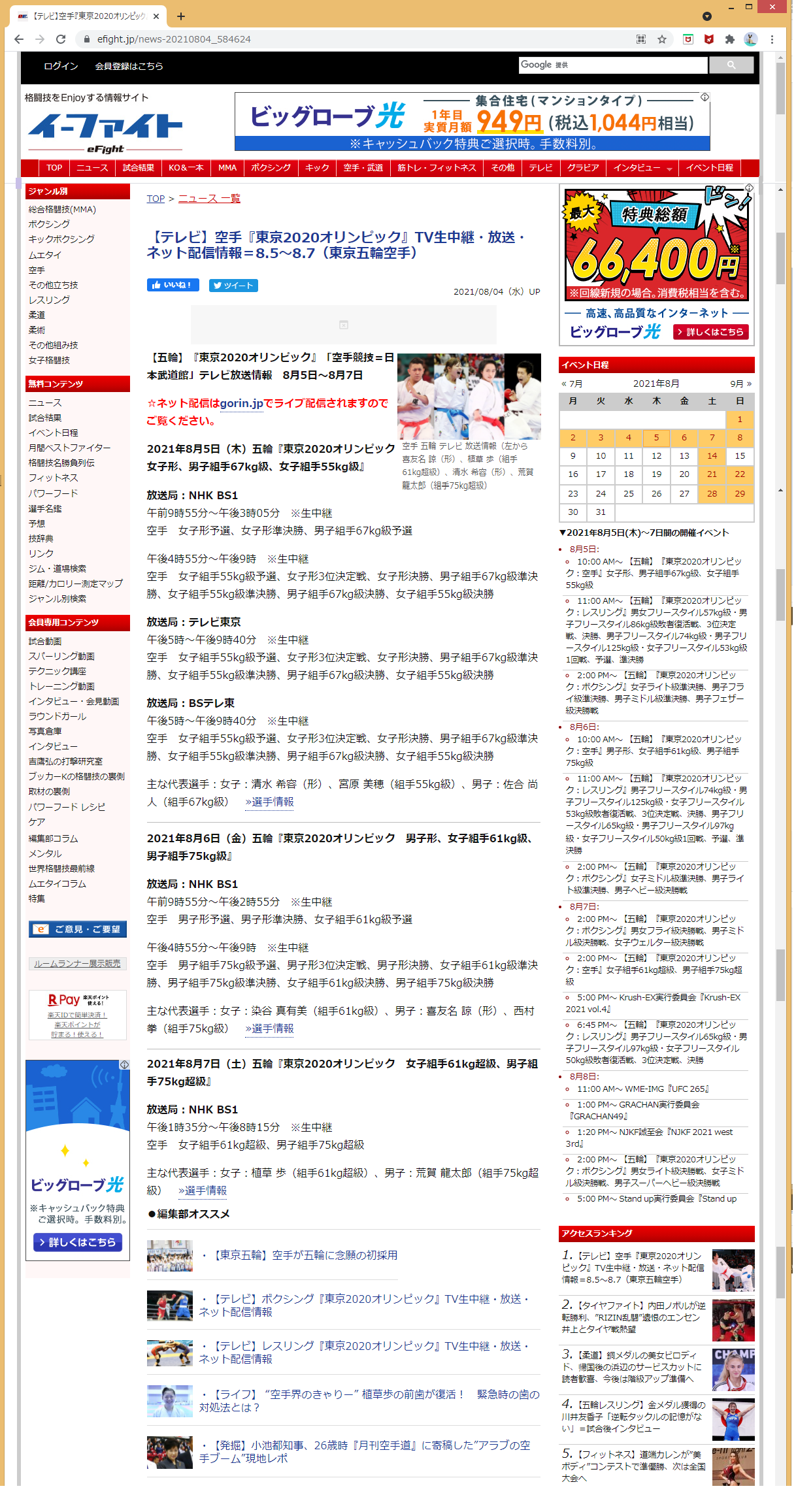 2020 東京オリンピック 空手 放送情報